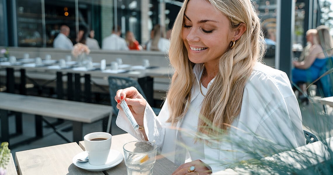 Her er hemmeligheten: Bland inn en dagsdose av vårt kollagenpulver for en velværeboost som støtter huden din mens du nyter drinken. Hvem sier at hudpleie ikke kan være deilig?