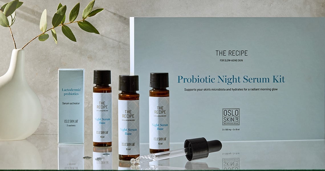 Oppdag The Recipe – Oslo Skin Labs nye hudpleieserie, utviklet med klinisk dokumenterte ingredienser og bygget på en filosofi om «slow-aging». Kjernen i serien er vårt banebrytende Probiotic Night Serum Kit – en sann innovasjon som gjør det mulig å tilføre levende probiotika i hudpleierutinen din, og med dette styrke hudens mikrobiom.